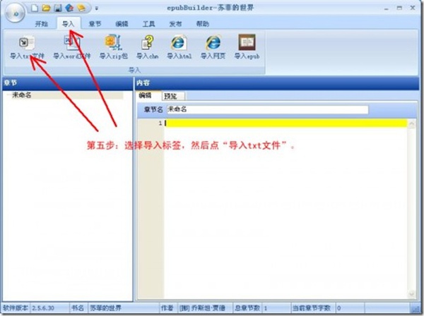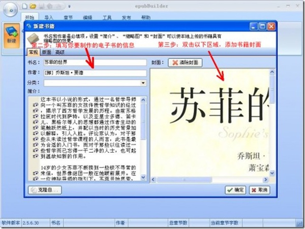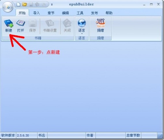 在PC上安裝好epubBuilder,打開軟體,如圖。(圖片文字說明看不清楚的請點擊圖片看大圖。)